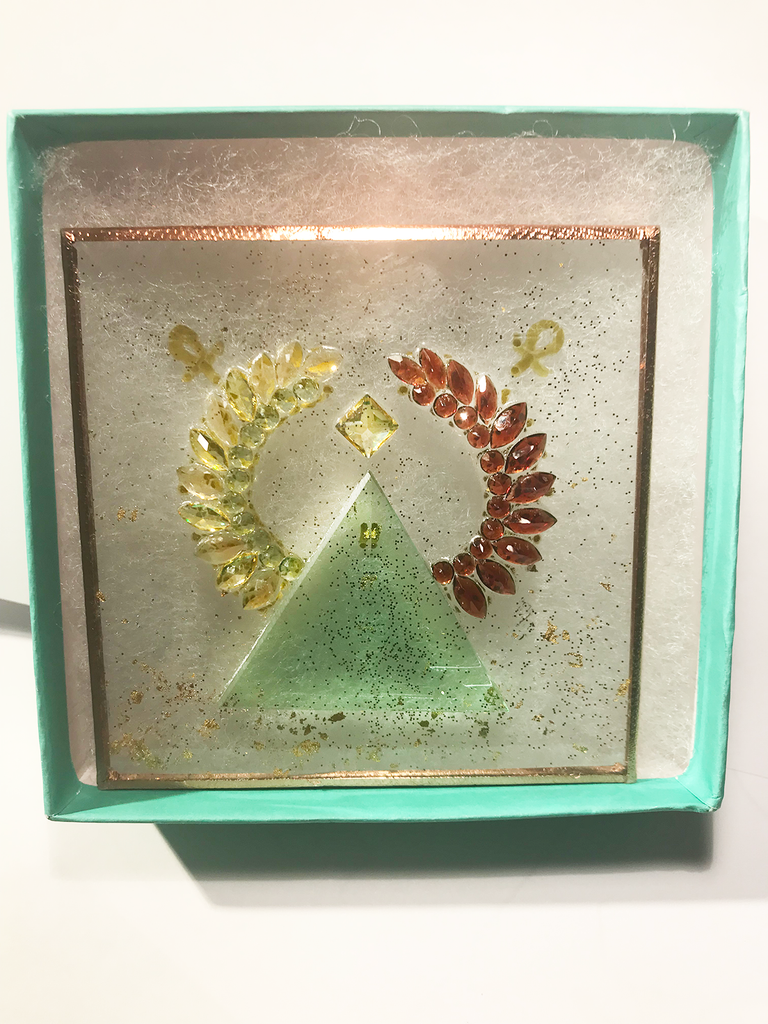 It is made of specialized quartz glass, cut to reflect the light in such a way as to amplify the power of the cosmic energies.